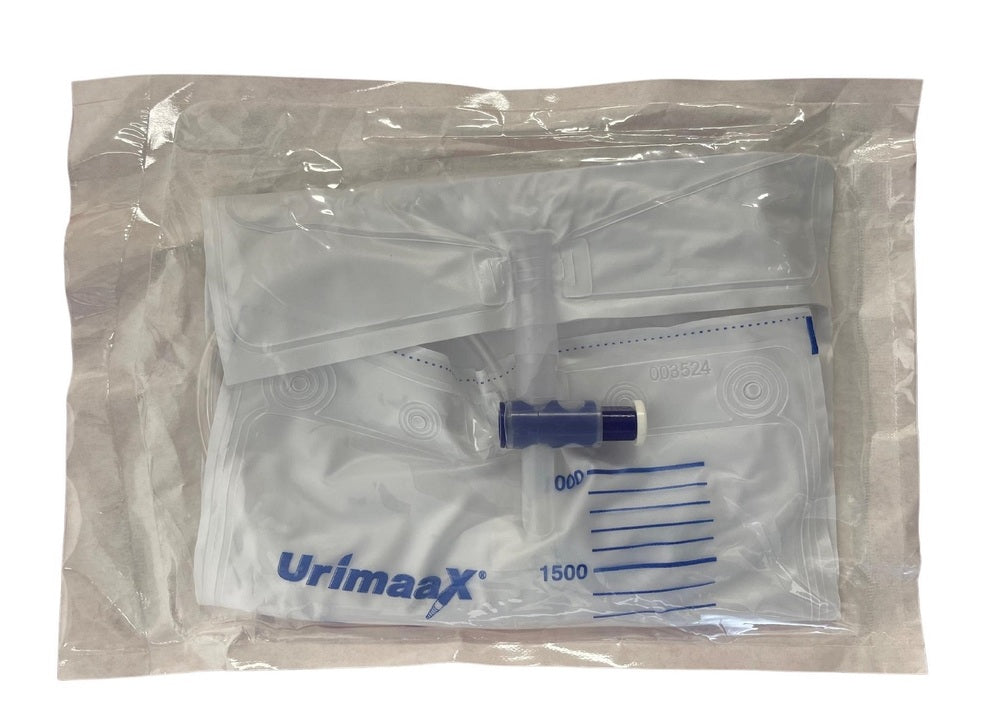 Aaxis Pacific Urimaax Drainage Bag Closed System is a latex-free, sterile 2000 ml drainage bag with a bottom T-Bar drain with large finger control and a universal stepped catheter connector. Urimaax Drainage Bag Closed System has a needle free sampling point and hanger holes to fit universal plastic or metal hangers.