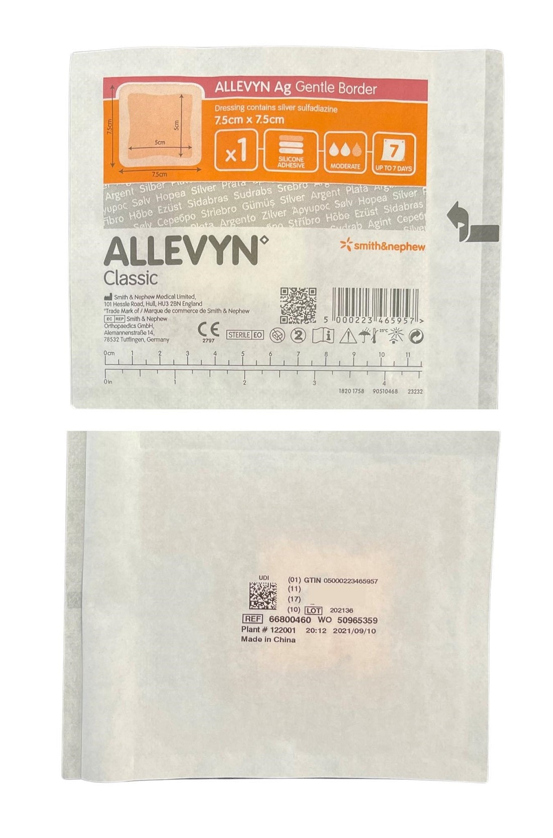 Smith & Nephew Allevyn Ag Gentle Border Dressing is designed for optimally managing exudate, including a unique two-in-one solution for exuding chronic wounds and providing a rapid and sustained antibacterial action. This foam dressing lowers the pain and trauma during dressing changes. Allevyn Ag Gentle Border is ideal for use on exuding partial and full wounds such as diabetic ulcers, decubitus ulcers , donor sites , and first and second degree burns, debrided and partially thick wounds, necrotic or sloughy wounds when used in conjunction with a hydrogel dressing and fragile skin.