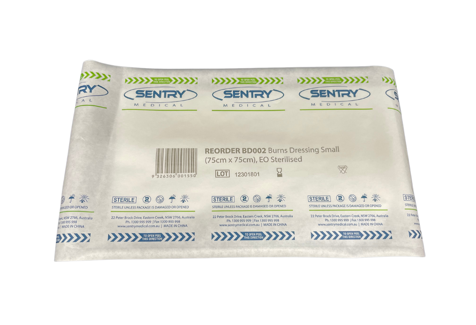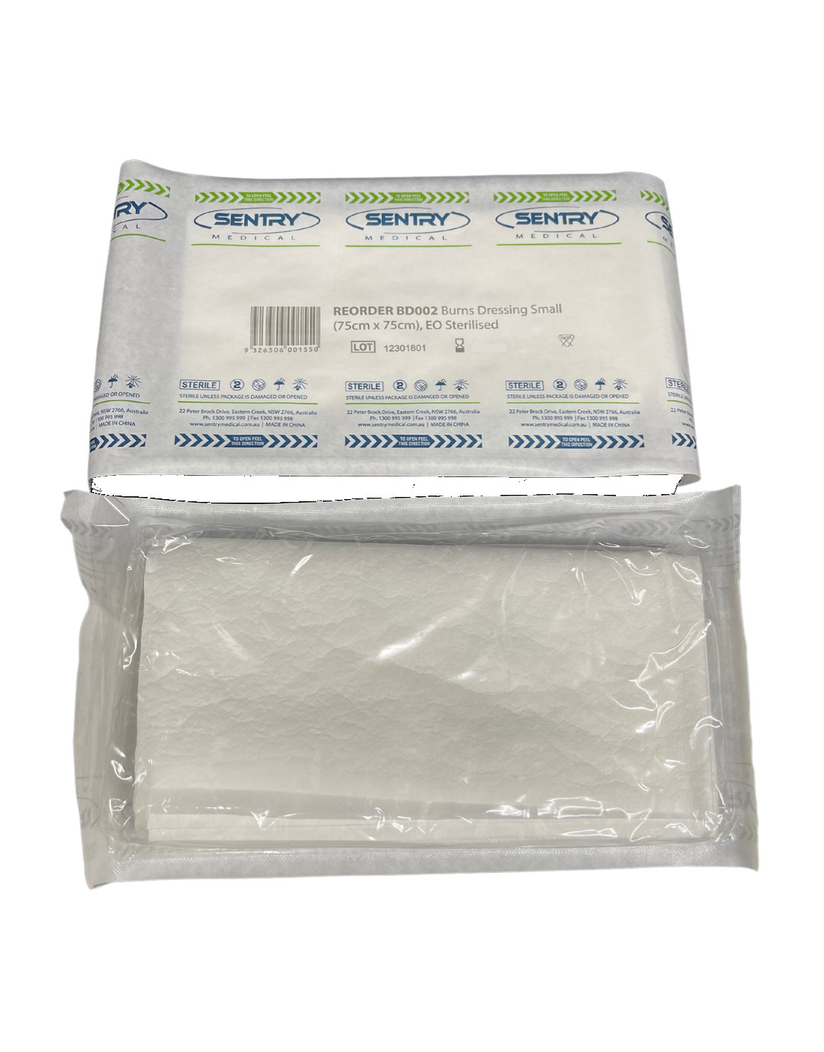 Sentry Medical Burns Dressings have a one-sided thin, non-adherent layer preventing adherence to burns and allowing ease of removal.
