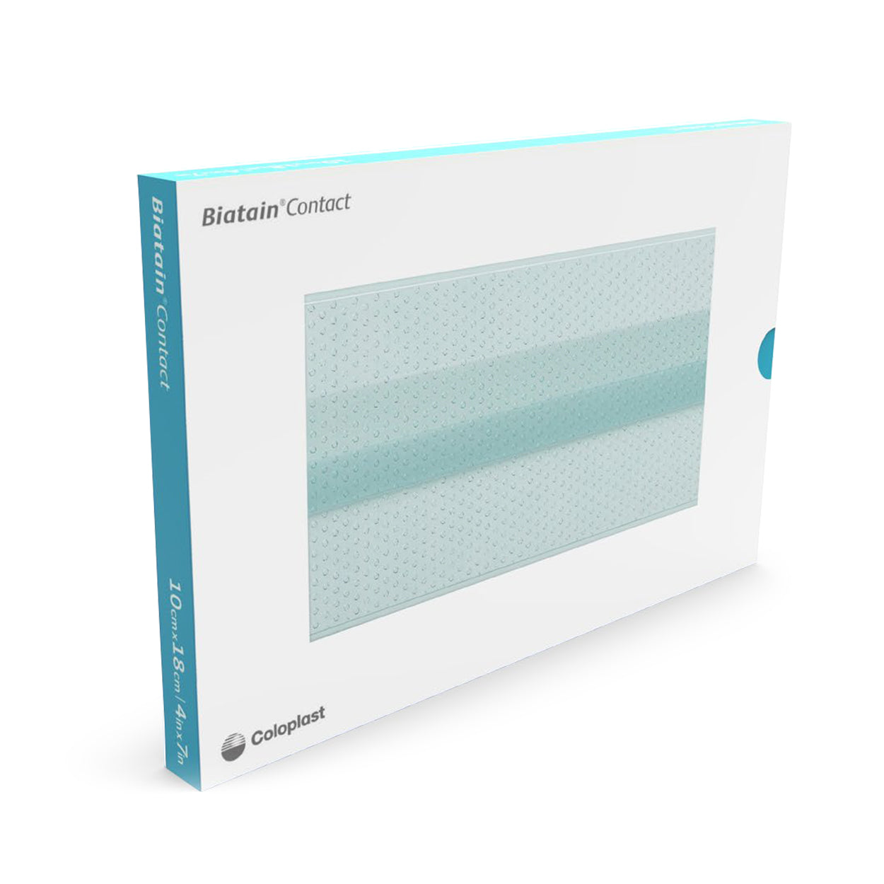 Biatain Contact is a one-sided silicone contact layer offering properties to overcome the challenges in the treatment of ulcers and chronic or acute lesions with various levels of exudate.