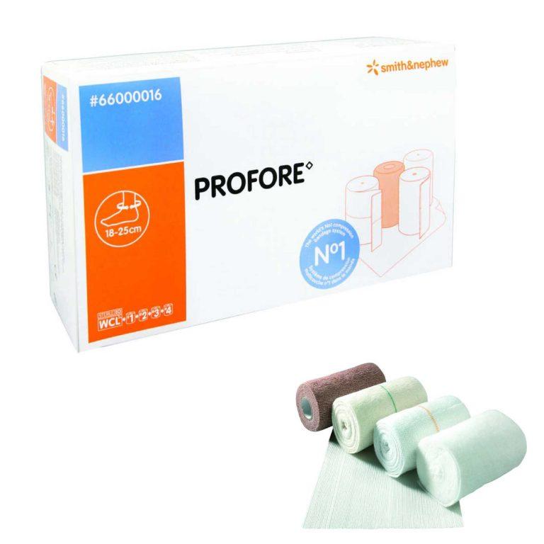 PROFORE COMPRESSION BANDAGE SYSTEM FOR LEG ULCERS Profore is a convenient presentation of the clinically effective 4 layer bandaging system for venous leg ulcer management. It reinforces a safe and consistent protocol to heal up to 79% of venous leg ulcers in 12 weeks.