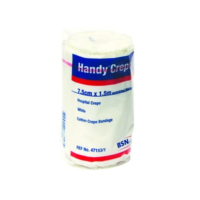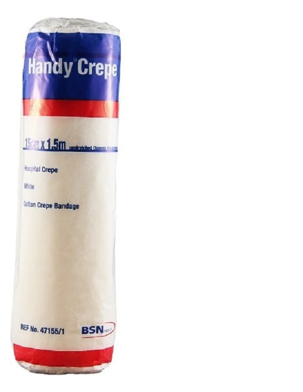 BSN Handycrepe Hospital Crepes are cotton white crepes having non-fraying edges and used for general-purpose bandaging. These medical crepes are wrinkled and light weight. They are convenient bandages appropriate for dressing retention and available in sterile or non-sterile format and in a variety of sizes.