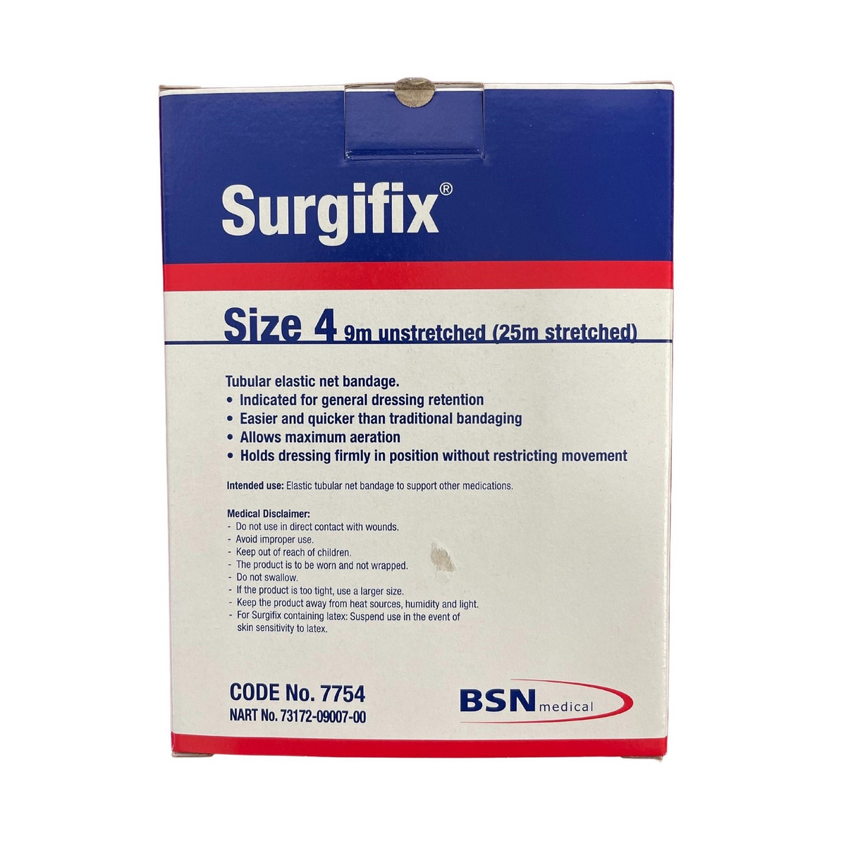 SURGIFIX TUBULAR ELASTIC NET BANDAGE Surgifix is a soft, white, elastic net bandage knitted from polyester, polyamide and latex yarns. The special construction ensures that it can be stretched without shrinking or distorting and minimises torniquet effect. It is available in 8 sizes and can be stretched to 25m in length. deal for dressing retention on heads, fingers and other awkward sites, Surgifix is particularly useful for dressing retention in chronic wound treatment. It is easy to apply and is highly versatile to fit a broad range of indications. Surgifix is available in a roll format that can be cut to the required size to minimise wastage, making it highly cost-effective. The open breathable design facilitates monitoring of the wound site/device and ensures the dressing is held firmly in position, without restricting patient movement. Easy to wash and change compared to standard crepe bandages, Surgifix is a cool, conformable, low-bulk bandage solution.