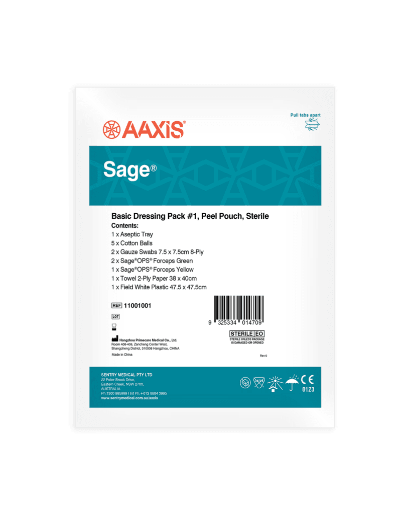 Convenient and easy to use, Sage Basic Dressing Packs provide an all-in-one solution for basic wound care and general purpose medical procedures. These packs require no preparation time, and come in sterile condition to ensure sterility and safety. Sage Basic Dressing #1 features a patented non-touch opening method, ensuring aseptic integrity and allowing it to be opened without compromising the sterile field.