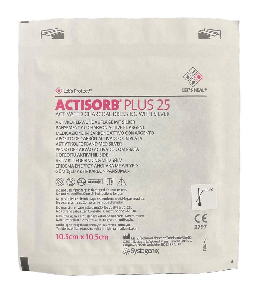 ACTISORB PLUS 25 DRESSING Actisorb Plus 25 Silver combined with an actived charcoal cloth dressing provides a uniquely effective dressing for cleansing and dedorising chronically infected wounds
