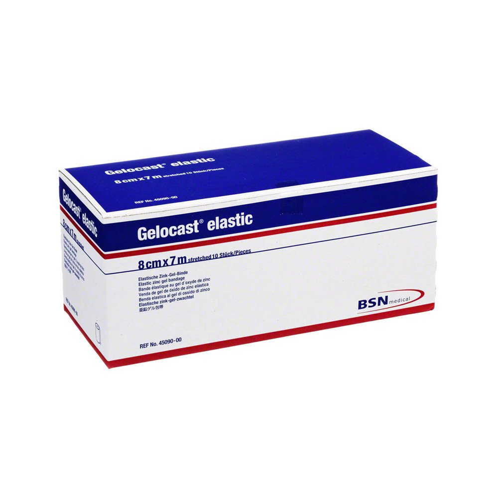 Gelocast Elastic is a semi-rigid support and compression bandage consisting of a cellulose base and zinc oxide gel coating. Gelocast Elastic is preservative-free and safe to use on sensitive skin. The gel mass has a creamy consistency which allows for rapid and mess-free application. After quickly drying, the bandage converts into a semi-rigid state and produces a low resting pressure and a high working pressure, providing graduated compression and support.