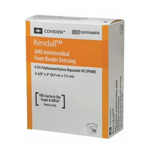 AMD FOAM 8.9cmx7.6cm A better wound environment leads to better patient outcomes. Kendall? AMD antimicrobial foam dressings provide an ideal healing environment by simultaneously managing moisture and bacteria in the dressing. As the foam dressing absorbs exudate, Polyhexamethylene Biguanide (PHMB) ? a powerful yet safe antiseptic ? targets and kills bacteria on contact.
