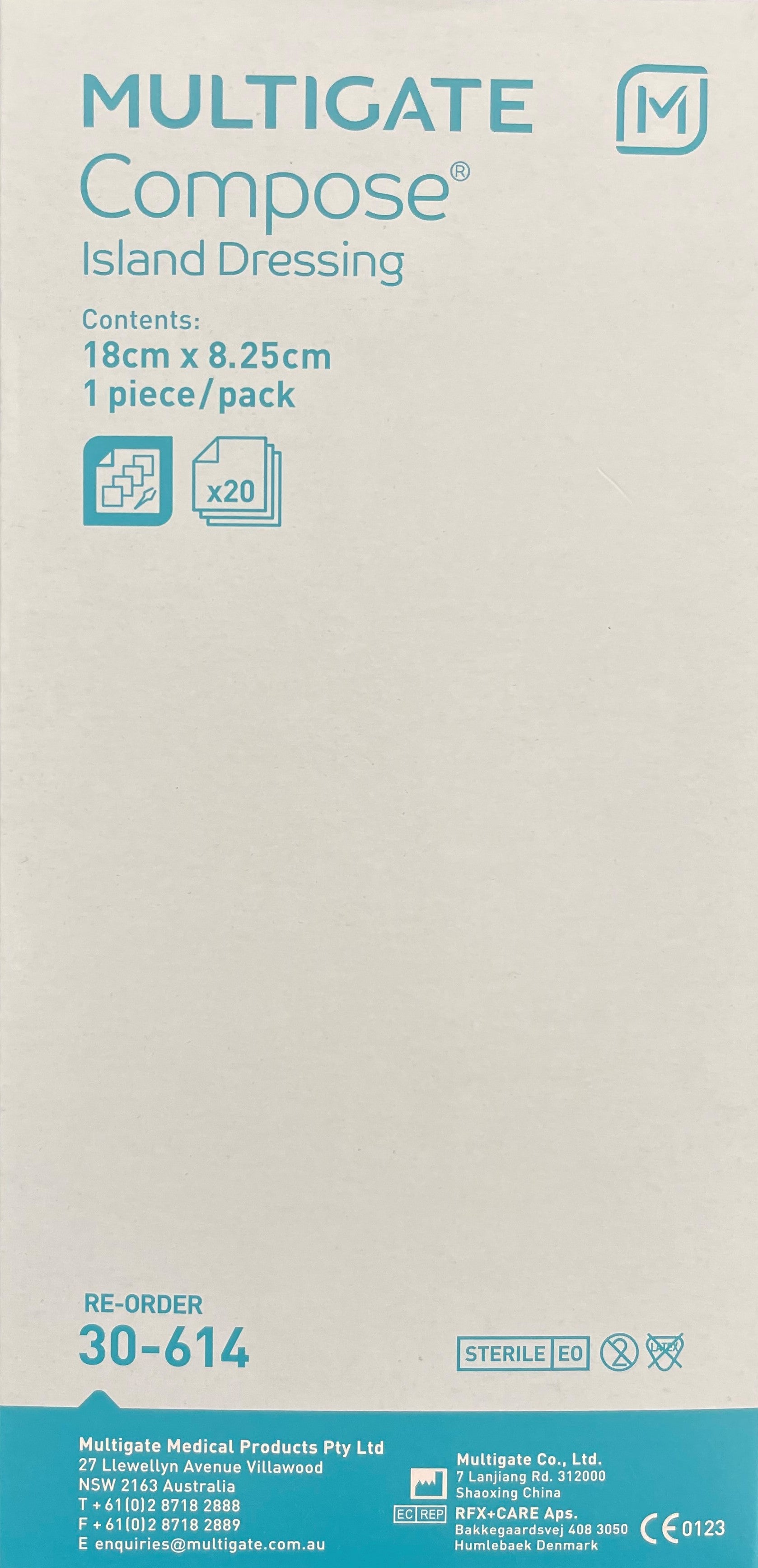 Multigate Compose Island Dressing is designed for providing optimal exudate absorbency. This dressing is an economical bandage consisting of a non-stick pad which is surrounded by a secure adhesive border. It is made from highly absorbent material, 100% sterile, comfortable, versatile and easy to use. Multigate Compose Island Dressing ensures a secure fit due to its gentle adhesive border and also protects you against bacterial contaminations. This dressing is available in a variety of sizes and packs of 20 or 50.