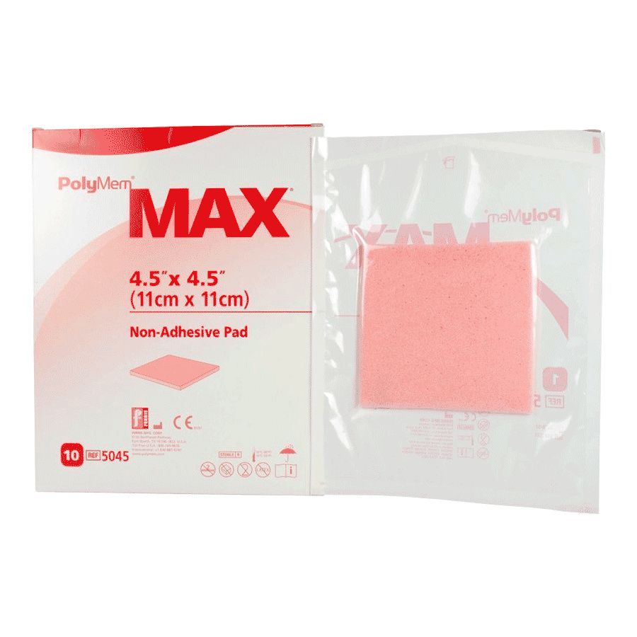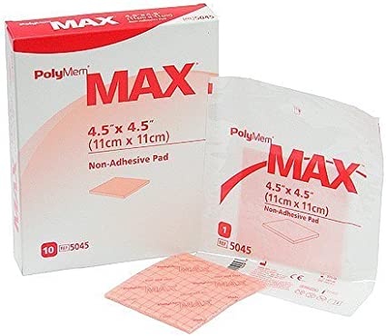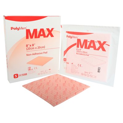 Configurations: - PolyMem Max non-adhesive pad dressing is designed to function as primary and/or secondary dressings - This configuration comes with a thin film backing found on other PolyMem dressings