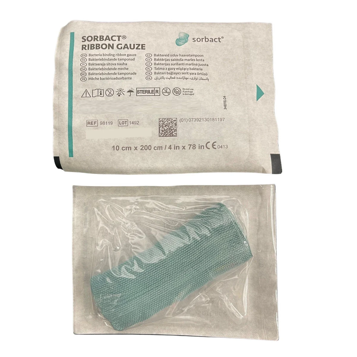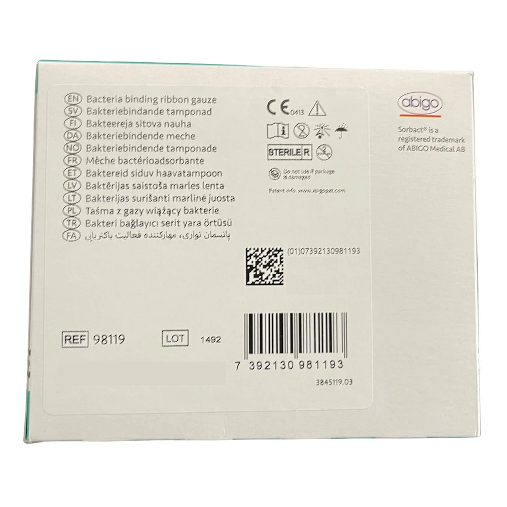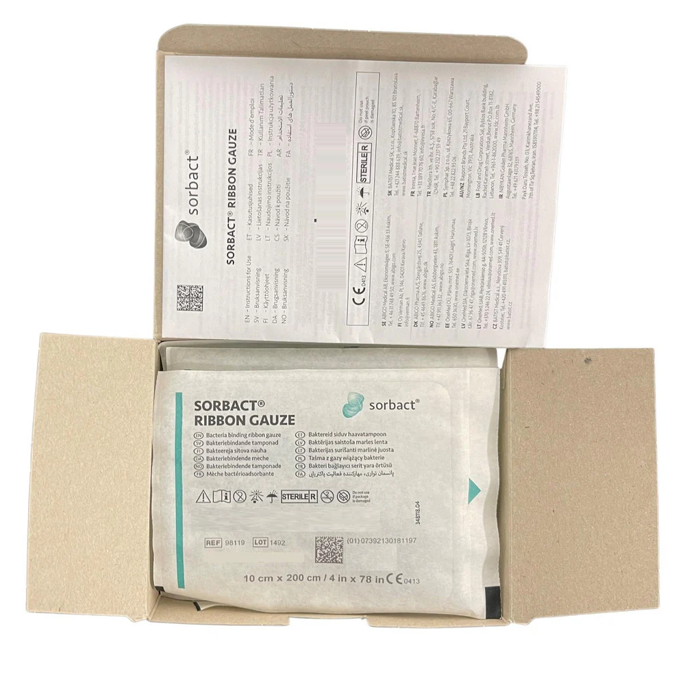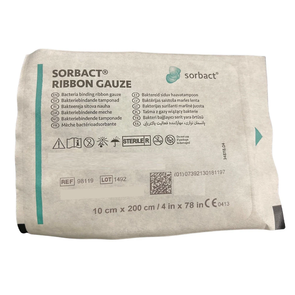 Sorbact Ribbon Gauze is a sterile, bacteria and fungi-binding wound dressing. It consists of a green Sorbact wound contact layer, which allows the passage of wound exudate into a secondary dressing. The dressing can be used in compression therapy.