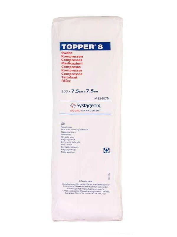 | M53407N | Topper™ 8 Non-Woven Swabs and 3M™ Topper™ Drain Swabs, Topper 8 Swabs – Non-sterile , 8PLY 7.5 x 7.5 cm |