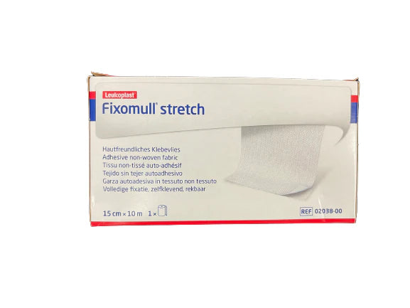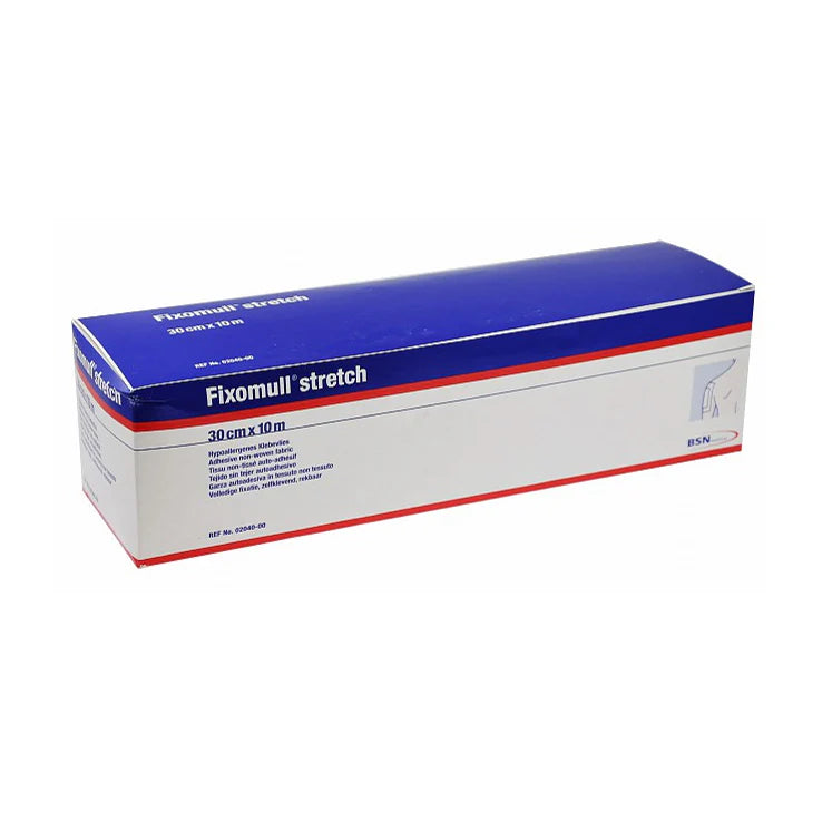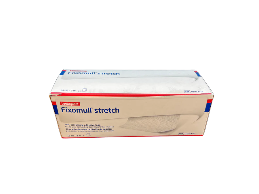 Fixomull Stretch is a wide area adhesive tape, especially suitable for use on frequently mobile and highly contoured parts of the body. Fixomull Stretch can be cut to the required size, which means it can be tailored to protect the entire wound dressing against contamination.