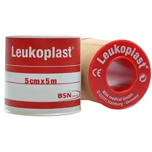 LEUKOPLAST STANDARD TAPE (RIGID RED SPOOL) Leukoplast is a tan-coloured zinc oxide tape for securing dressings, and is both waterproof and dirt repellent, which means it is extremely durable in wet and rough environments. The strong yet gentle adhesive means Leukoplast can be worn for extended periods without irritating normal skin. It adheres strongly and reliably even under heavy strain, and features high tensile strength. Leukoplast is easy to tear and is permeable to both air and water vapour to prevent maceration.