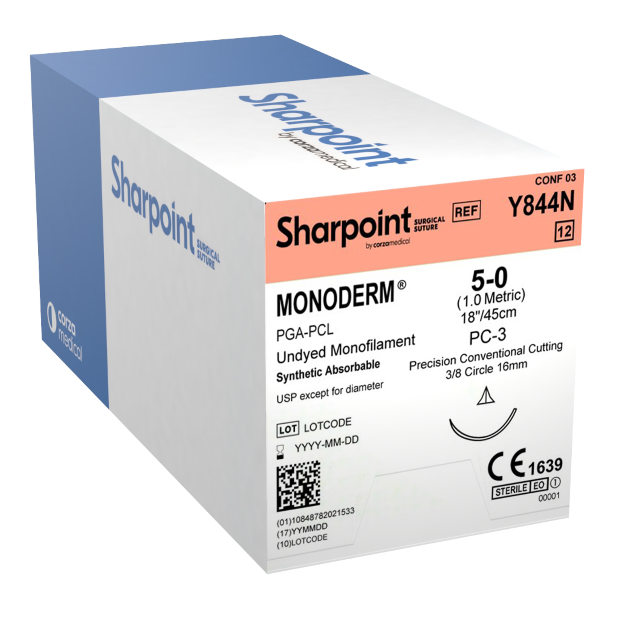 Suture Monoderm Sharpoint is a highly innovative product designed to enhance the surgical process, particularly in the ophthalmic field. It is a box of 12 sutures, available in various sizes, catering to different surgical requirements.